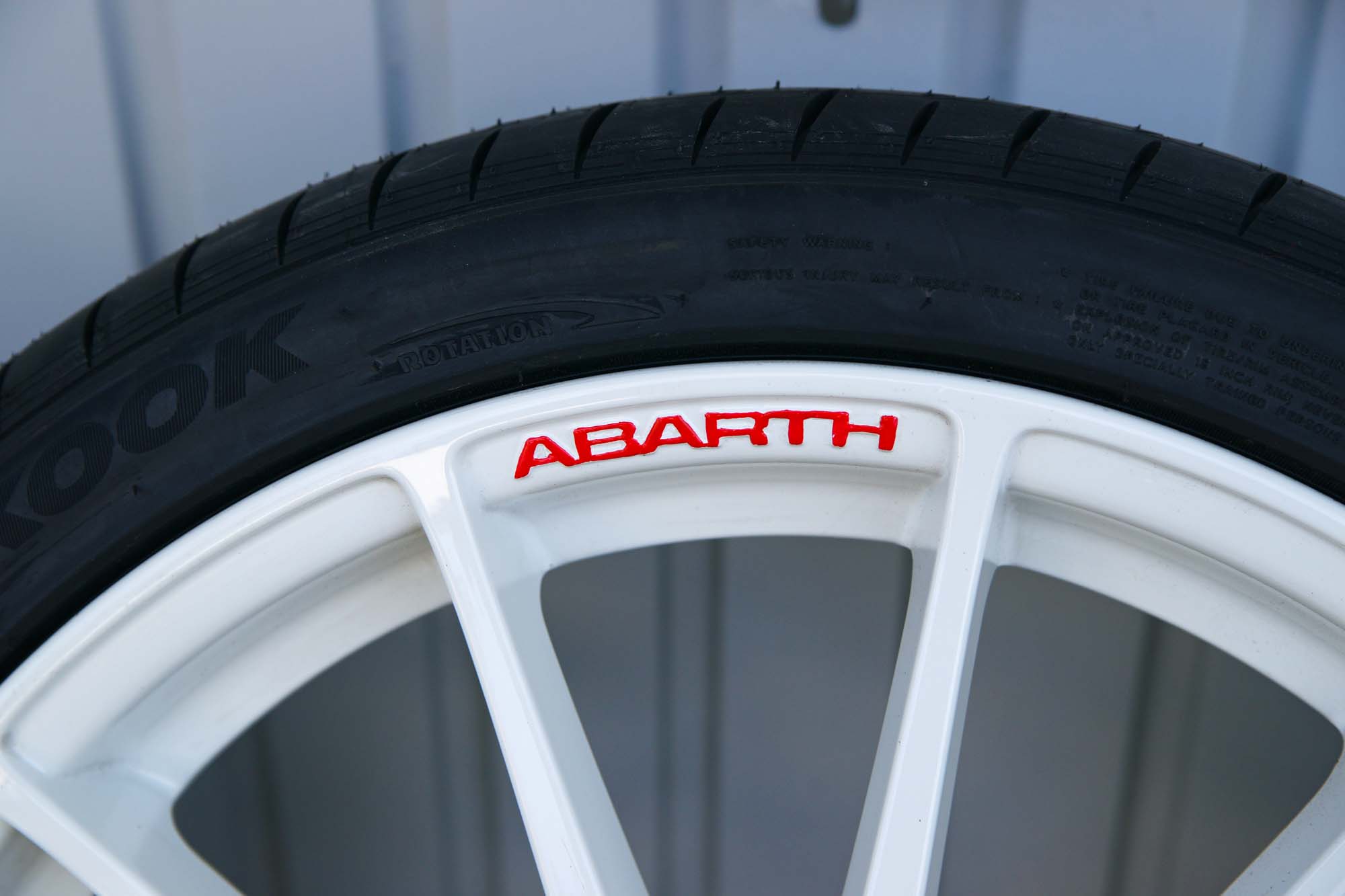 den Fiat Punto Esseesse in weiss (Alufelgen 7,5 J x 18). Die Felgen sind gebraucht, aber in einem fast