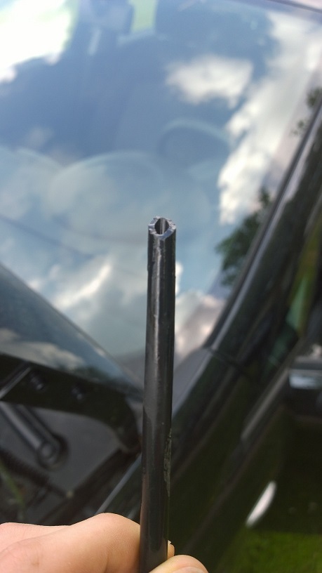 bei meinem Punto wurde anscheinend der Schlauch vom Scheibenwischerwassertank (?) zu den Scheibenwischern durschgeschnitten.
