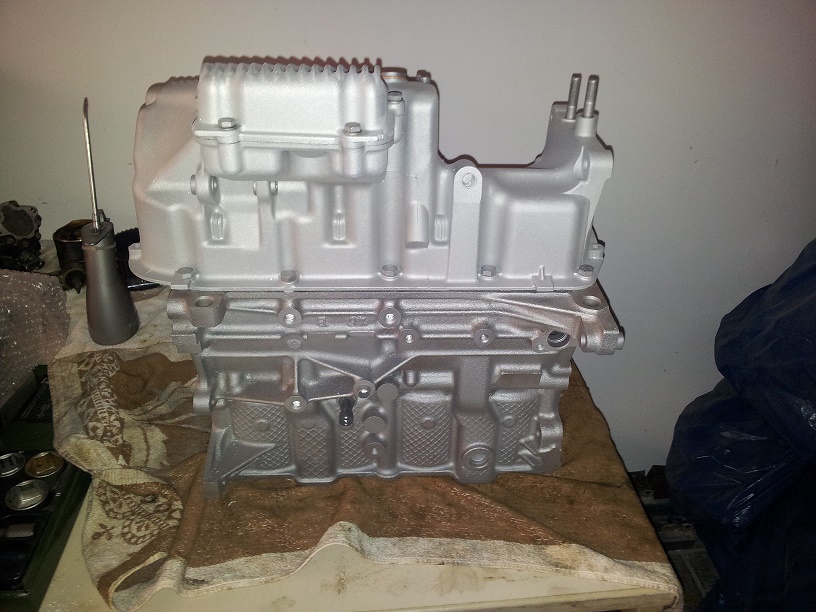 und zum Schluß der Motor wo alles verbaut werden soll, frisch vom Glasperlstahlen zurück. Wobei dies das zweitemal war, daß ich ihn zum strahlen abgebe, nämlich das erste und letzte mal.... hatte überall Sand im Motor, trotz richtig peniblem abkleben.... Hab länger gebraucht ihn zu reinigen als alles andere.... der nächste Motor geht zum chemischen Entlacken.