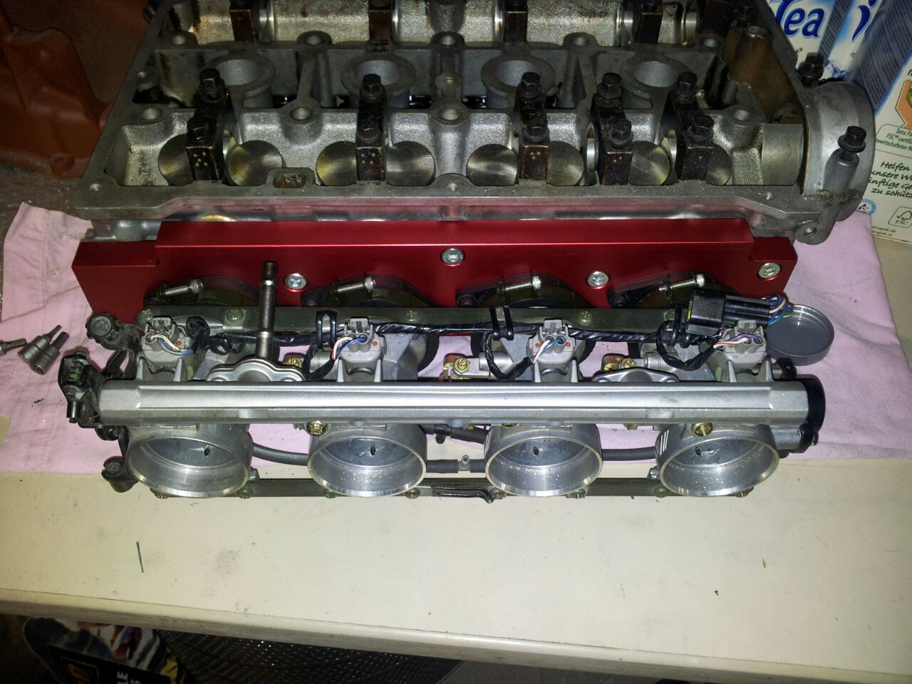 Verbaut sind mechische Tassenstössel, Serien-Ventile (größer geht es nicht), umgeschliffene Nockenwellen von Fa. Dbilas,
