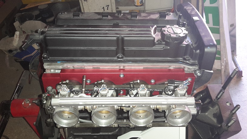 Ich hab jetzt mal die Einspritzanlage montiert und die Auslass-seite mit einem pappschablone abgedeckt, damit kein Dreck in die Kanäle fliegt.