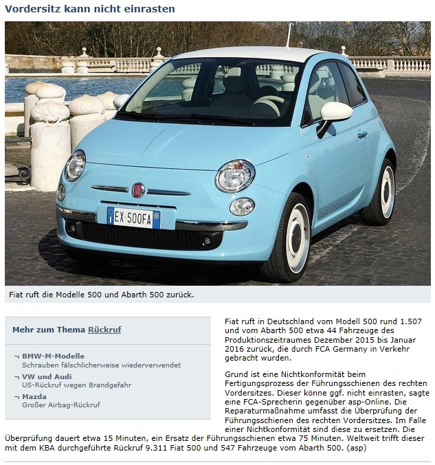 Rückrufaktion Fiat 500!