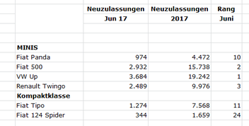 Der Fiat 500 holt sich bei den Minis wie üblich den 2. Platz, der Panda jetzt unter den Top 10 bei den Minis.