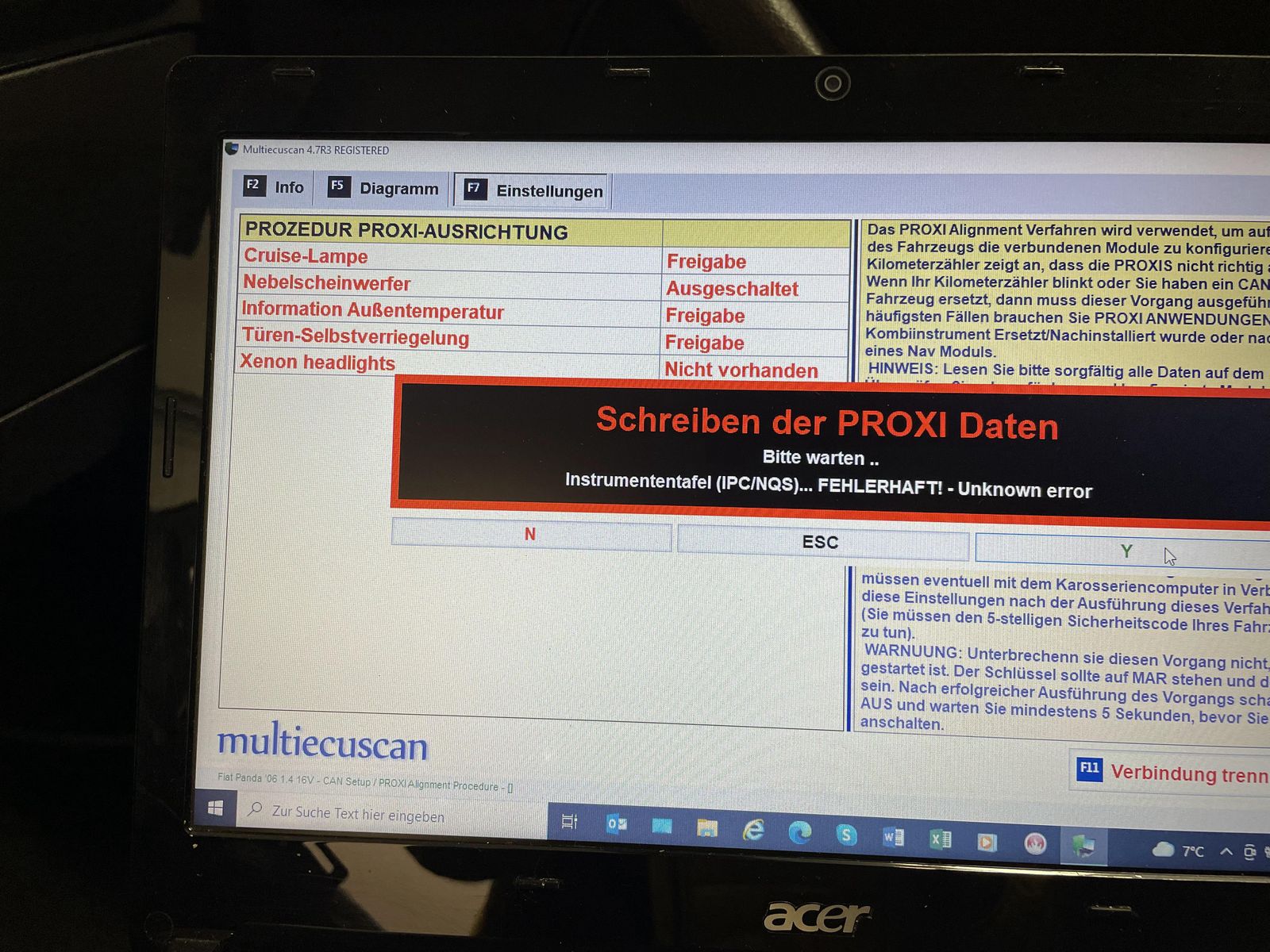 Kann die Proxy Ausrichtung nicht wegen dem abgelegten Fehler im kombiistrument durchgeführt werden ?