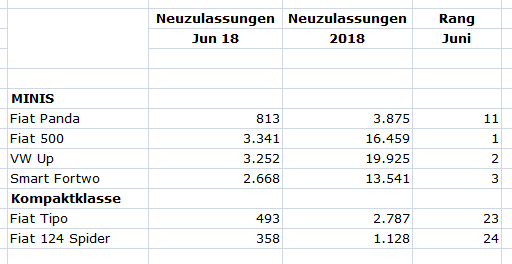 Fahrzeuge mehr verkauft! Stagnation beim Tipo! Die Zulassung des Spiders verdoppelte