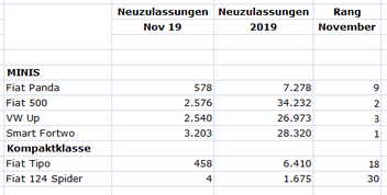 • Fiat 500 mit einem Minus von 10% gegenüber dem Vormonat, der 1. Platz