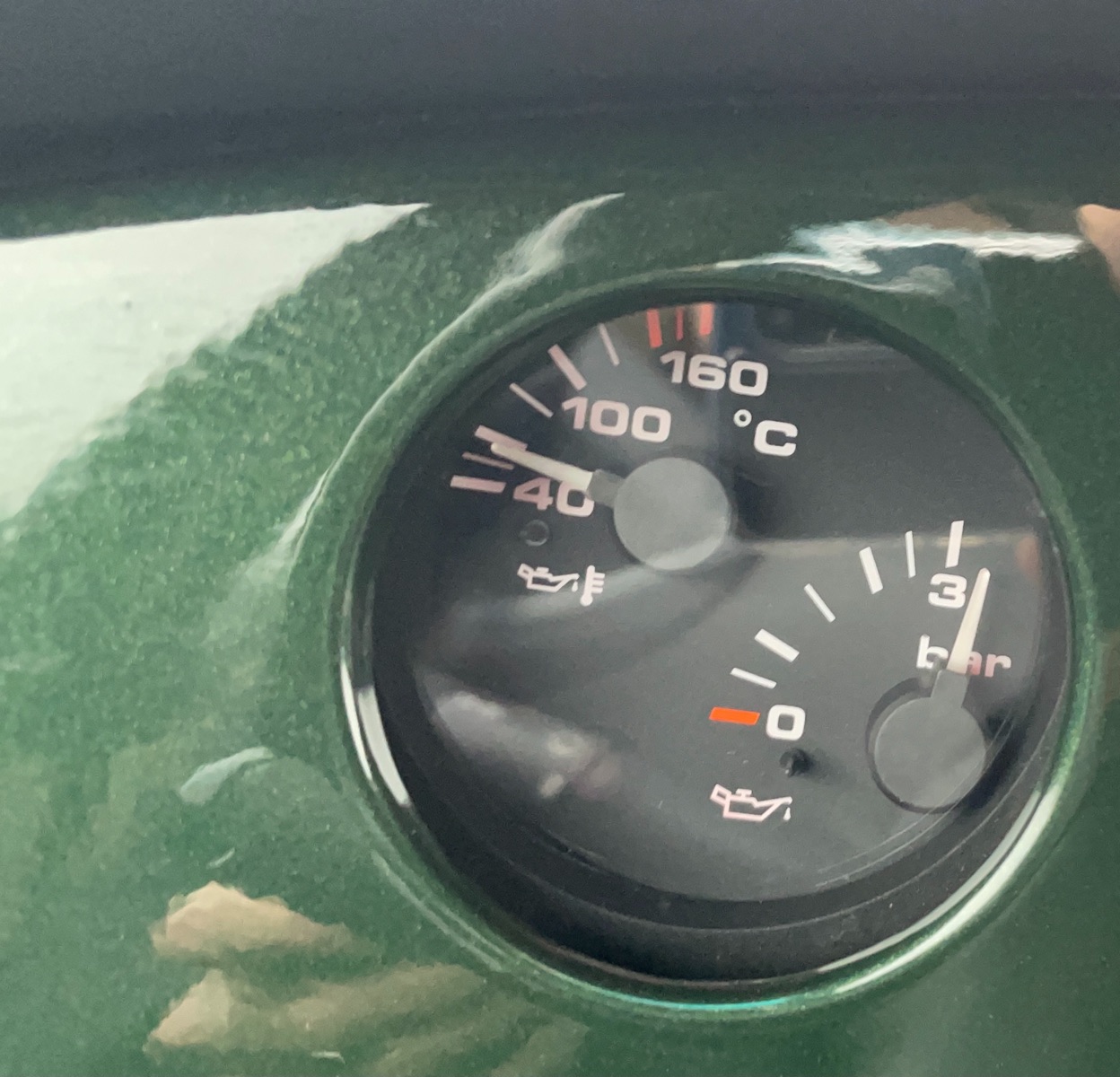 Als ich dann geparkt habe und ca. 3-5 min nachlaufen hab lassen ist die Öltemperatur auf ca. 60 Grad und die Wassertemperatur auf knapp 90 Grad gestiegen.