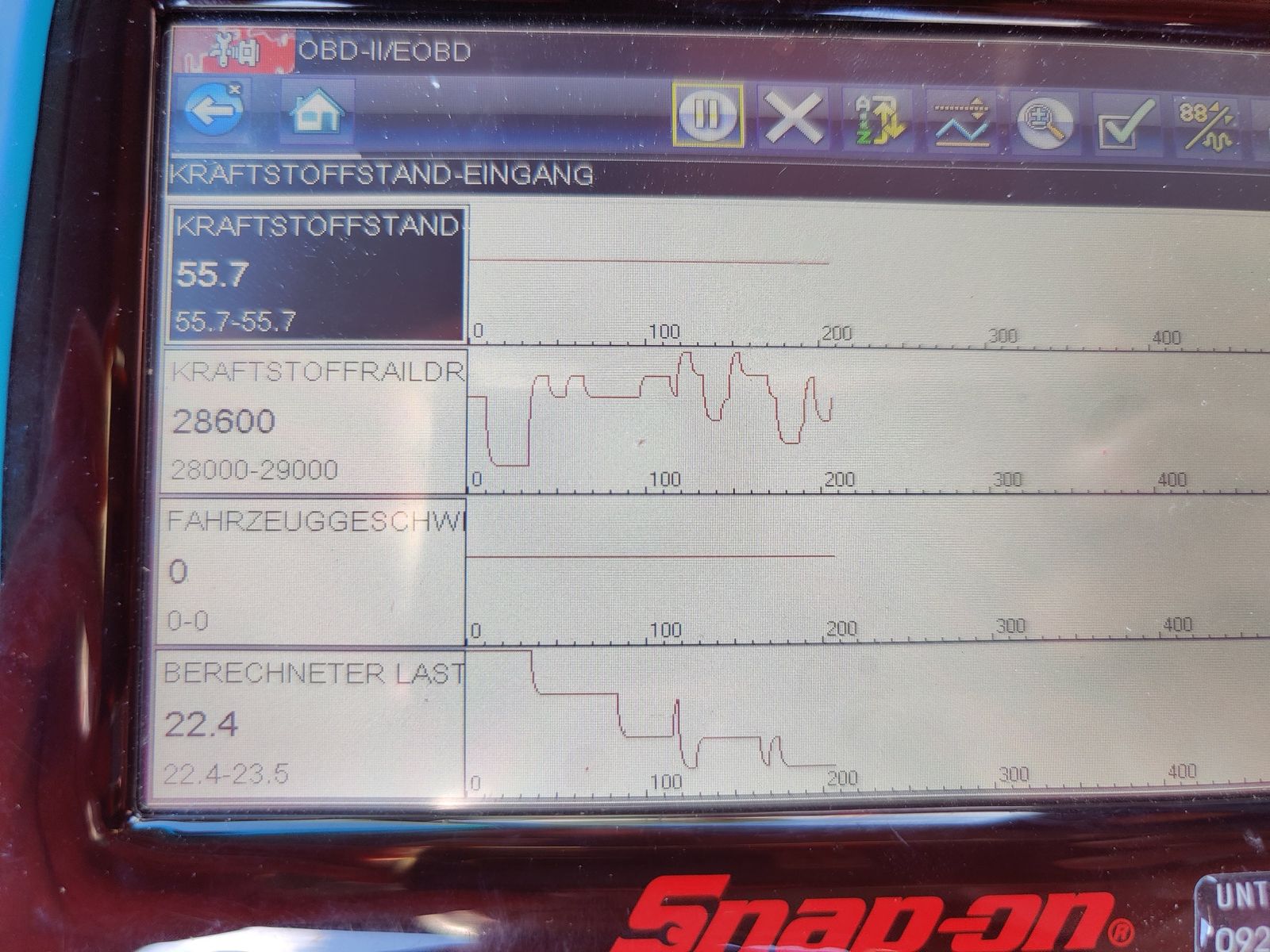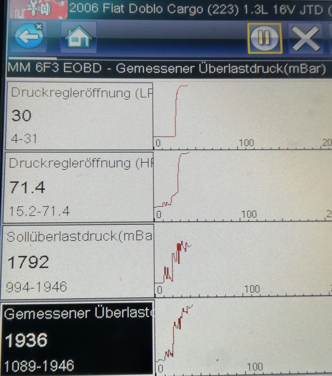 Überlastdruck (Ladedruck) zeigt auch Abweichungen. Kann aber auch am Messintervall liegen. Die Messwerte werden bei dem Tester nur alle 1-2 Sekunden aktualisiert.