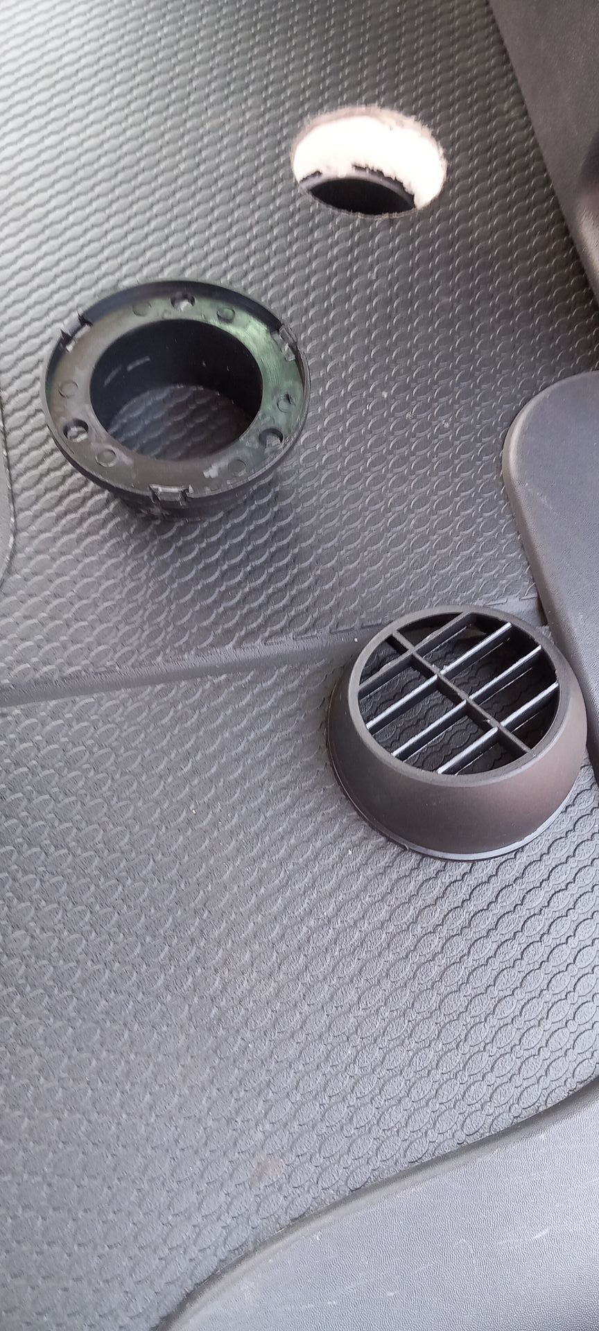 für die Warmlufteinlass +ein vorhandenes Loch ( Platikdeckel ausdrücken ) nutzen für die Elektrik..vorher natürlich ALLE Sitze +die Bodenabdeckung raus.Bis hier waren es ca. 4 Std mit 2 Leuten die schrauben können .