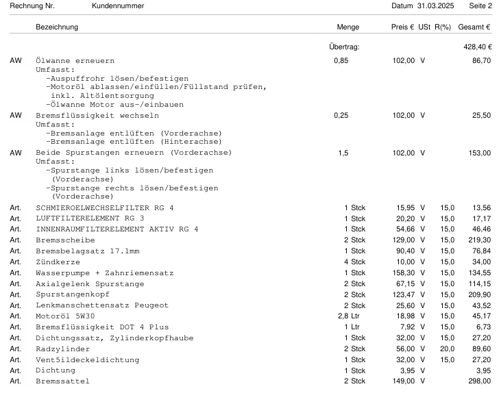 Hallo, mein Sohn hat sich im Februar einen Fiat Punto EVO 1.4 mit 77 PS gekauft. Normalerweise mache ich Bremsen und Inspektion selbst, aber da die Ölwanne ein kleines Loch hatte, haben wir diese Arbeiten in einer Werkstatt ausführen lassen.
