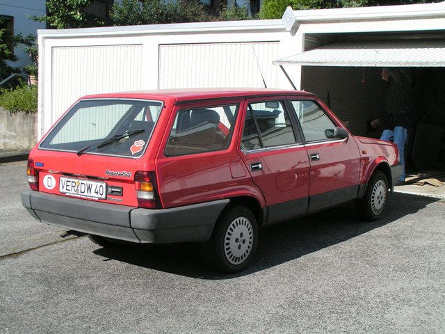Dieser Wagen wurde von uns 1985 als neuwagen als Ersatz für den damals leider durchgefaulten Ritmo 60 gekauft. Die genaue Modellbezeichnung ist 75S Weekend. besonderheiten an diesem Fahrzeug sind eigentlich nur, dass es sich immernoch im Erstbesitz befindet (wieder von Ummeldungen von Vaddern zu Muddern abgesehen). Der Zustand ist wie mir von anderen bestätigt wurde sehr sehr gut (trotz der Laufleistung von 178000 km). Wichtig dabei ist, der Wagen ist ebenfalls unrestauriert - er müßte nurmal wieder gewaschen und poliert werden. Zur Zeit ist der Wagen zusammen mit unserem 127´er auf einer 07´er Nummer angemeldet.