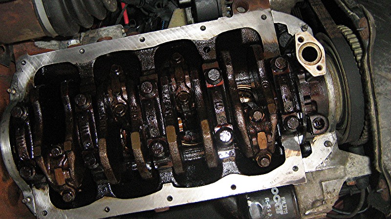 Neue Wanne (Fa. Augustin) mit Dichtsilikon belegen (offiz. ca. 2/3 der Tube ausdrücken). Dann Wanne ran und alle Schrauben wieder festziehen. Den Rest in umgekehrter Reihenfolge wieder zusammenbauen. Krümmer- und Ringdichtung zum Mittelrohr, sowie Ölfilter gleich mit austauschen. Ich hab's über Nacht durchtrocknen lassen - Alles dicht!!! Nicht vergessen: Neues Öl rein... und ab auf die Piste