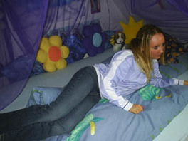sie die Augenbinde und rief: "Ueberraschung!!" Zu seinem Entsetzen mußte er