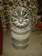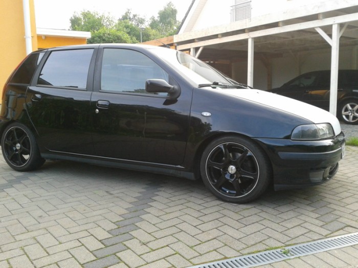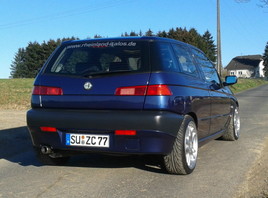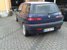 Am Alfa habe ich den Innenraum selbst teilgesattelt. Lenkrad ist schwarz/dunkelblau, Schaltknauf ist dunkelblau. Außen ist sonst mit den Felgen und der Tieferlegung (neben dem Auspuff und Seitenblinkern) alles fertig. Zum Wechseln hab ich von meiner Frau einen zweiten Satz flammneue 17zöller geschenkt bekommen. Dafür habe ich eben noch die Reifen zu bestellt. ![]()