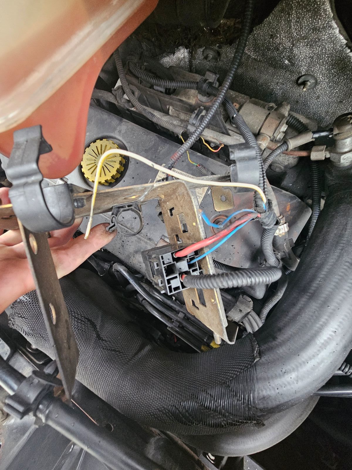 Gestern habe ich mehrere Lose Kabel im Motorraum gefunden hat jemand vielleicht einen schaltplan für die vorglühanlage da ich vermute das die dort hin gehören das blaue Kabel zeigt richtung Magnetventil Flammkerze unter der schwarzen Abdeckung