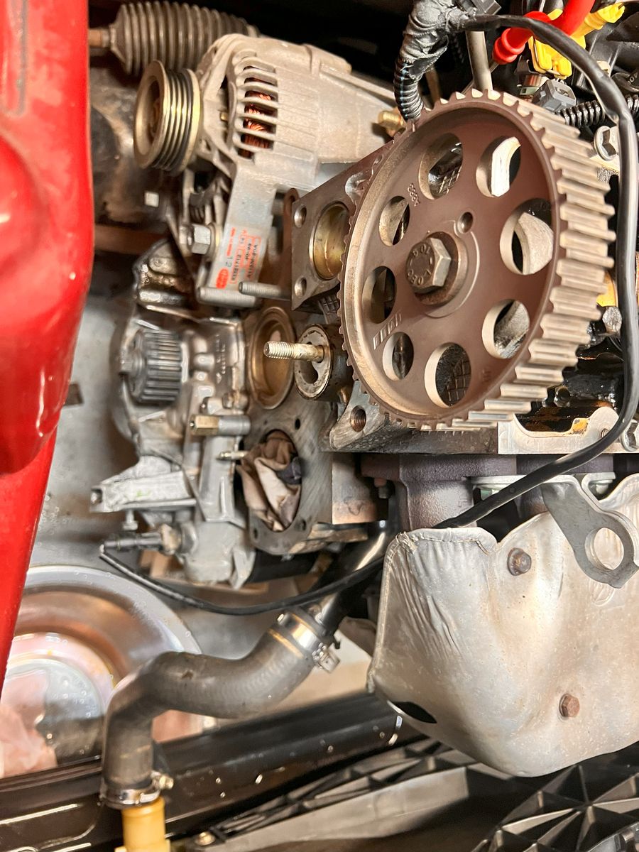 Ok, also habe ich gestern den Zahnriemen, Wasserpumpe, Spannrolle usw. demontiert.