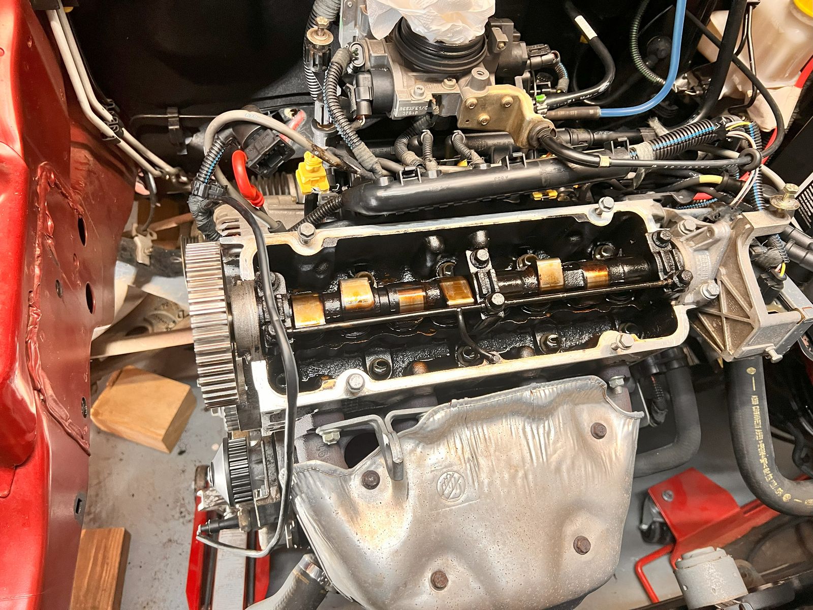 Der Übertäter ist eine defekte, schleifende Spannrolle. Die Wasserpupe und auch der Zahnriemen sahen eigentlich noch sehr gut aus. (für das alter echt ok) Nebenbei habe ich noch schnell das Ventilspiel geprüft und für ok befunden.