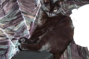 hier mal ein bild meiner katze wie sie faul auf der couch sitzt und die füsse hoch legt. von wem sie das wohl hat ???