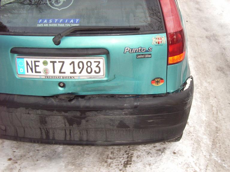 Ein Trottel von Mercedes M(irgendwas) Fahrer der seine Schei... Bremse nicht beherrscht hat und für den Abstand ein Fremdwort war, hat meinen kleinen Schrottreif gebumst.