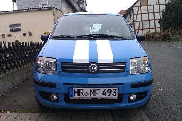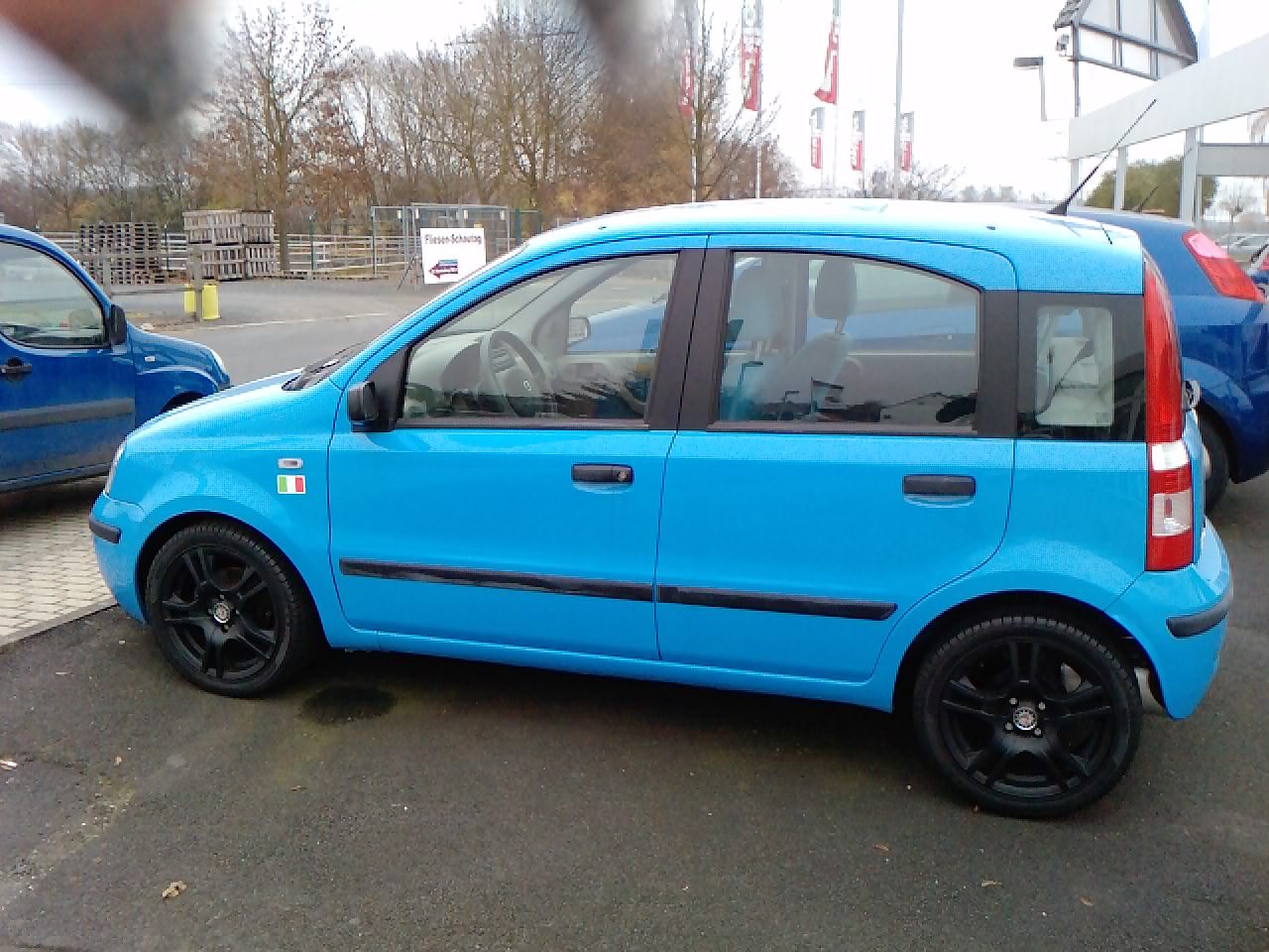 Ich komme aus dem Schwalm-Eder-Kreis in Nordhessen und fahre seit knapp 1 Woche einen Calypso Türkisen Fiat Panda Imola 1,2 l 60 PS. 66000km auf der Uhr, Klimaanlage, Nebelscheinwerfer, Eibachtieferlegung auf mattschwarzen 15" Alus - zur Zeit leider nur auf 13" Stahlfelge.
