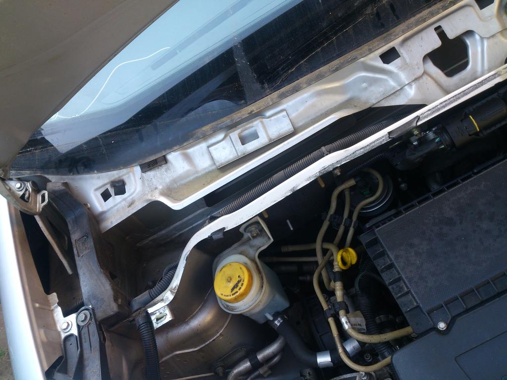 (Bei der Gelegenheit hab ich gleich mal mit 'nem Schraubendreher und einem Tuch den Dreck-Öl-Mix aus der Öffnung von der Ansaugbruecke geholt und das Rohr gereinigt.)Das gleiche gilt für die Gehäuseentlüftung. Dazu ganz links am Motor eine Schlauchklemme öffnen und abziehen. Den Plasteclip am Ölmessstab öffnen. Hinter der Ansaugbrücke sind dann noch 2 Schrauben und dann geht es rechts runter zum Turbolader. Muss alles gelöst werden, da es immer im Weg ist. Wird aber nicht ganz ausgebaut.