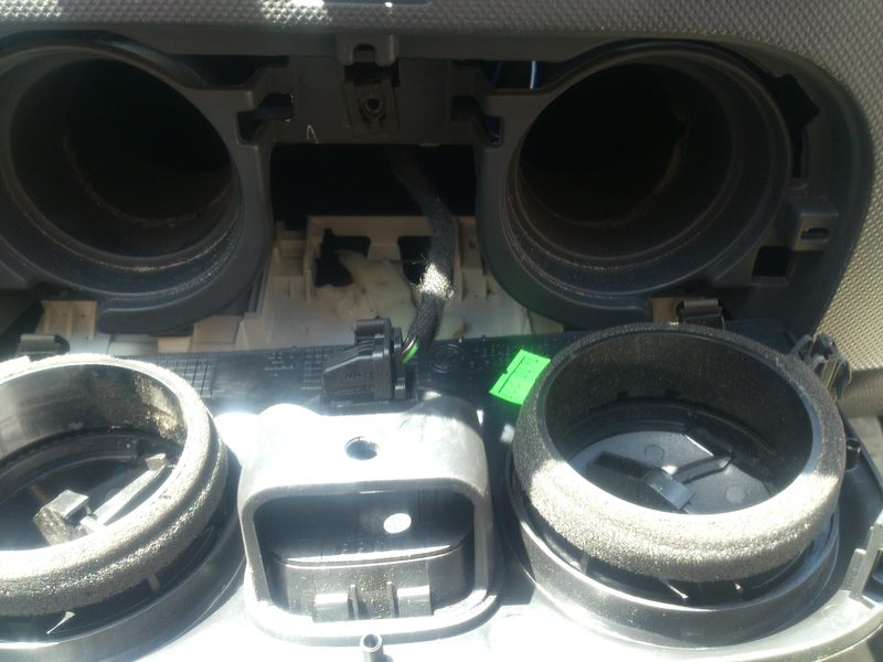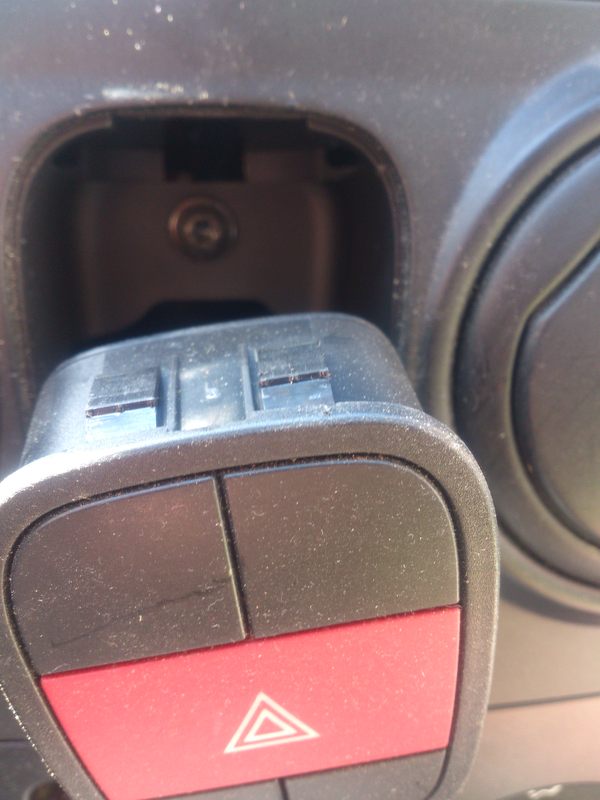 Also zuerst mit einem Schlitzschraubendreher von oben die Schalterkombi mit dem Warnblinker rausdrücken. Dahinter ist eine Torxschraube, wenn man die gelöst hat, kann man das mittlere Teil mit den Lueftungsoeffnungen (mit etwas Gewalt und Gefühl) herausziehen.