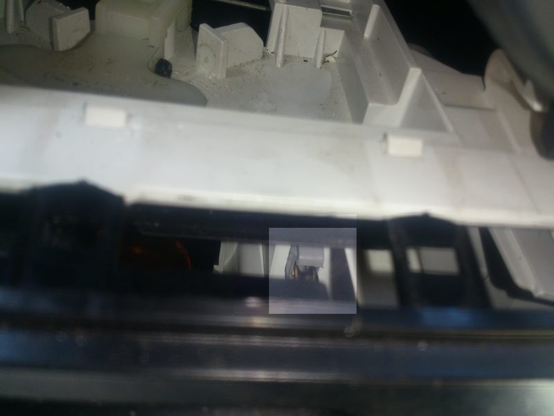 Dann wieder mit einem kleinen Schlitzschraubendreher die schwarzen Nasen der Front der Reihe nach oben leicht anheben und mit dem Finger den weißen hinteren Teil dabei nach hinten drücken, um einen Spalt ueber die gesamte Breite von max. 1cm zu erzeugen, durch den man an die Lämpchen kommt. Mit einem Schraubendreher kann man den Spalt blockieren.