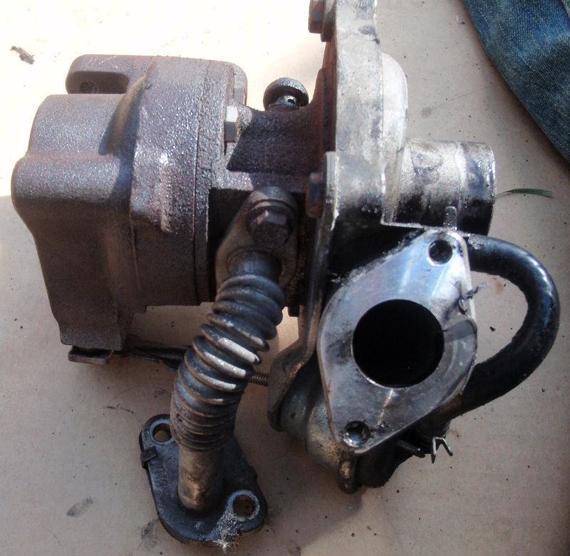 ...aber das Gestänge vom Wastegate bewegte sich nicht. Grund ist, dass die Achse an der Druckdose durch die ungünstige Einbaulage schleift.