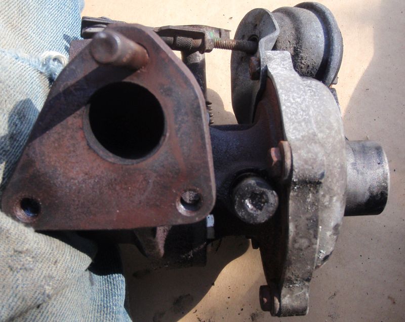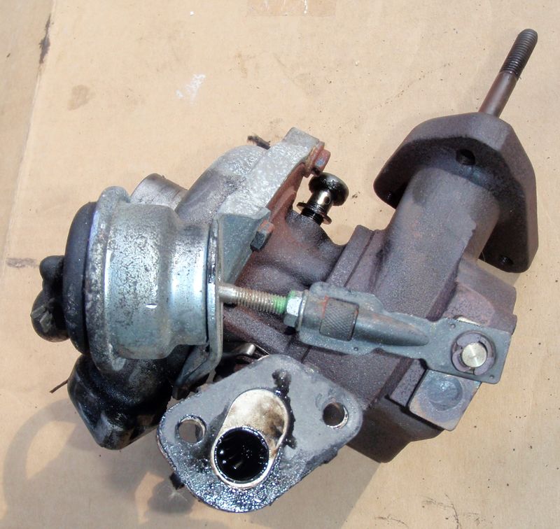 Festgestellt hatte ich vorher schon, dass die Turbine freigaengig ist (Zuluftschlauch abziehen und mit dem Finger an der Turbine drehen), aber die Druckdose vom Wastegate keine Reaktion zeigt (Steuerschlauch der Druckdose vom Turbo abziehen und mit 20ccm Arztspritze unter Druck setzen). Nun hatte ich endlich mal Zeit das Problem zu bereinigen.