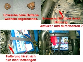 Ich wollte am Fiat meiner Freundin die Batterie wechseln, dabei ist mir die Schraube abgebrochen.