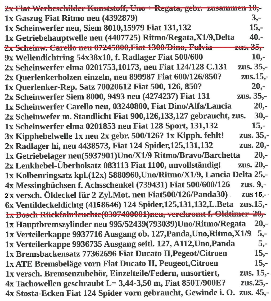 Habe meine Garage aufgeräumt und noch jede Menge Neuteile für Fiat/Lancia abzugeben.